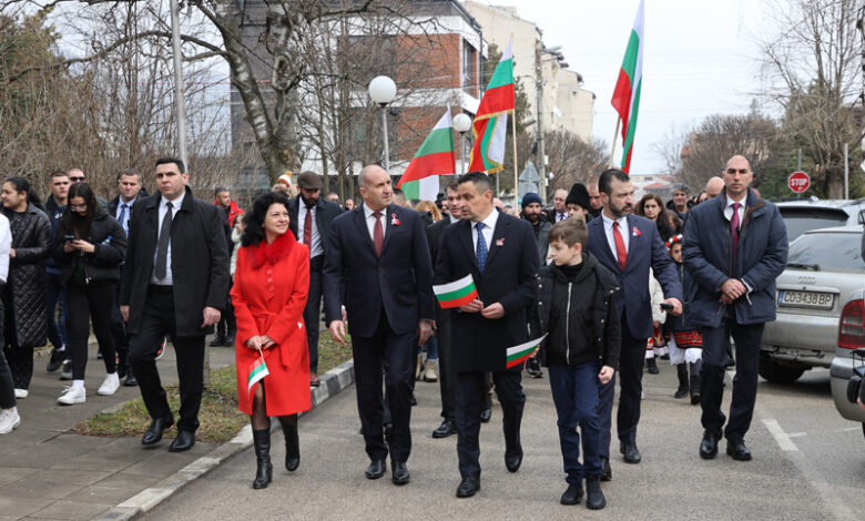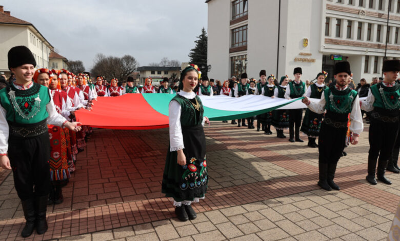 Събитието по издигането на националния флаг започна в централната част на града с шествие, което беше поведено от президента Румен Радев, кмета инж. Владимир Александров и председателя на Общинския съвет Боряна Керемидска. Самодейците от НЧ „Тодор Пеев – 1871“, облечени в носии, носеха знамето на България под звуците на гайди и тъпани.