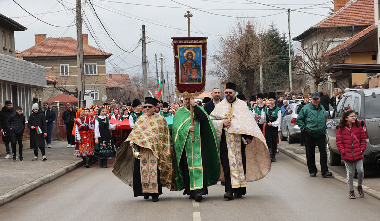 Отец Емил, отец Борис и отец Христо осветиха българското знаме, след което под звуците на Етрополската духова музика и химна на България, беше издигнат трикольорът. Формация „Българи“ зарадва присъстващите със своите песни, а младежите от ТА „Балканска младост“ при НЧ „Тодор Пеев – 1871“ представиха два танца под съпровода на Етрополската духова музика. Празникът завърши с традиционно българско хоро.