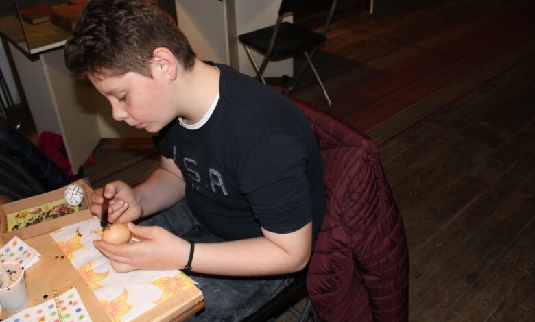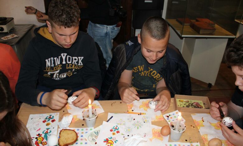В България са познати много техники за шарене на великденски яйца. Етрополе е един от центровете за рисуването им с восъчна техника, а от 2001 г. в Историческия музей е разработена образователна програма за съхранение и предаване на традицията за рисуване на „плескани“ яйца. Всяка година през работилницата преминават десетки ученици и възрастни, желаещи да научат повече за тяхната символика: петле и бардуче /стомничка/, цветя или кръст. Кръстът символизира Възкресението на Христа и раждането на живот. Той също може да бъде украсен с цветя и клонки. Петелът е символ на светлината, напредъка и растежа. Цветята – на пробуждането на природата и новото начало. Бърдучето е символ на чистотата.