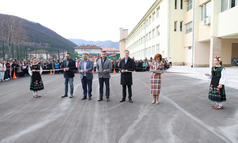Над 700 ученици, преподаватели и гости изпълниха двора на СУ „Христо Ясенов“ за официалното откриване на напълно обновеното училищно пространство – проект, реализиран благодарение на активната подкрепа на кмета на община Етрополе инж. Владимир Александров и партньорство с Благотворителната програма „Българските добродетели“ на Група ГЕОТЕХМИН.