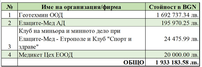 *Общата сума 1 933 183.58 лв. възлиза на 988 421.07 евро.