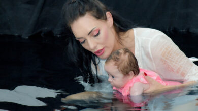 Подводна фотосесия на двумесечно бебе в бесейна на СУ „Христо Ясенов“