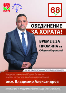 Кандидат за кмет на Община Етрополе от МК „БСП ЗА БЪЛГАРИЯ“ с номер 68
